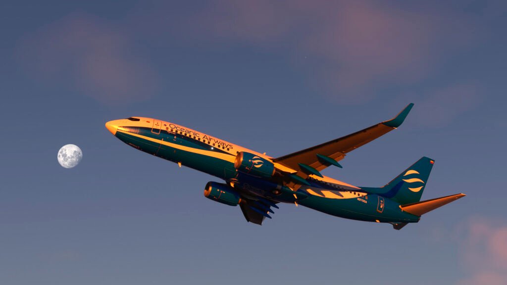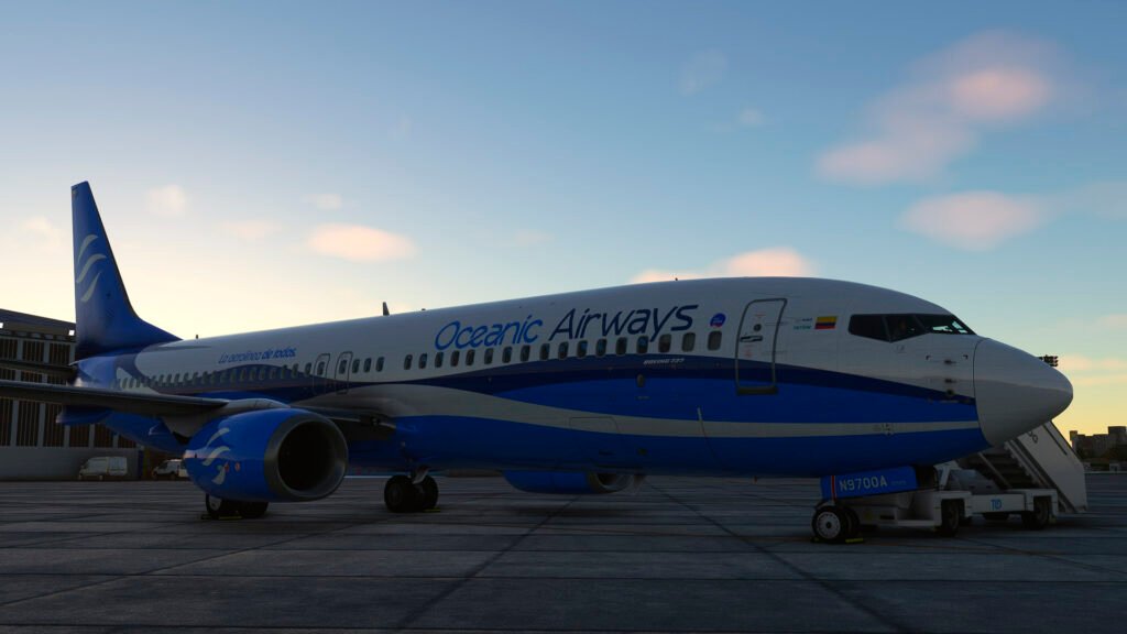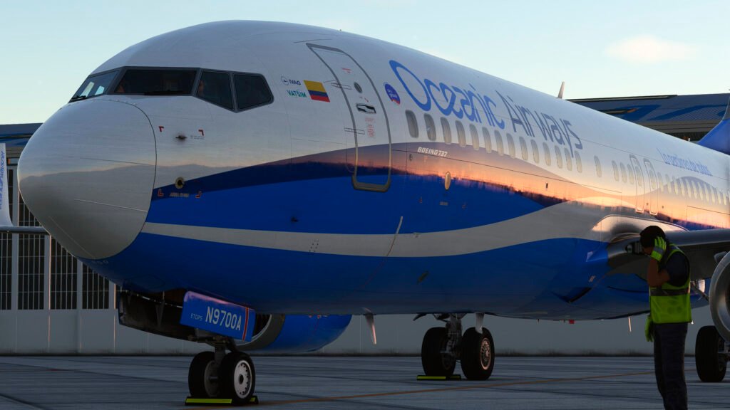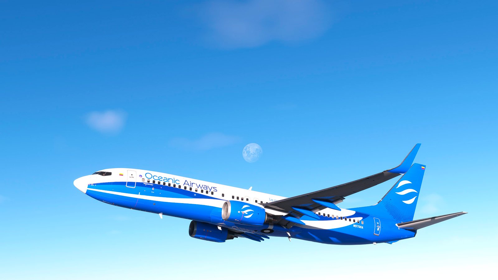 Oceanic Airways continúa renovando su identidad visual dentro del mundo de la simulación aérea con el lanzamiento oficial de su nueva livery para el Boeing 737-800NG de PMDG, disponible tanto para Microsoft Flight Simulator 2020 como para Microsoft Flight Simulator 2024. La aeronave luce la matrícula N970OA, incorporándose a la flota con un diseño moderno y fiel a la imagen corporativa de la aerolínea.
